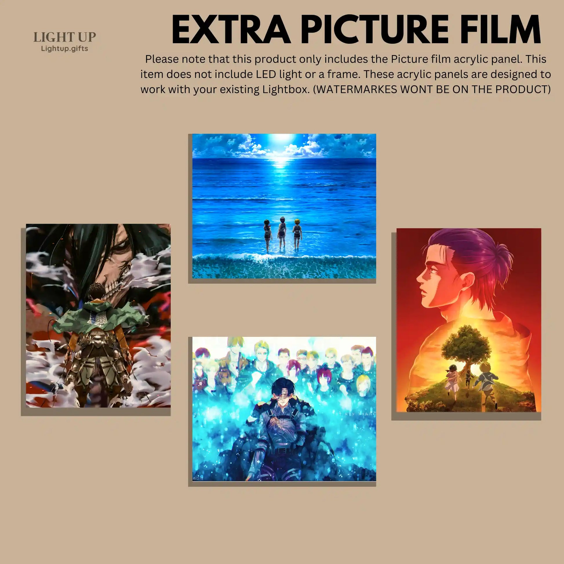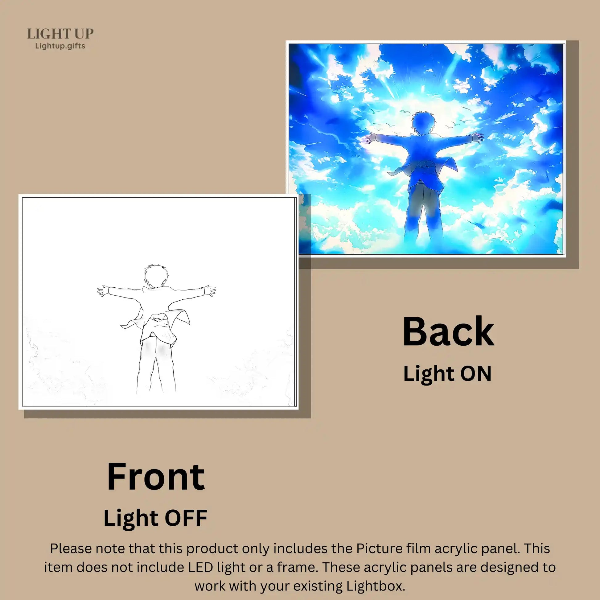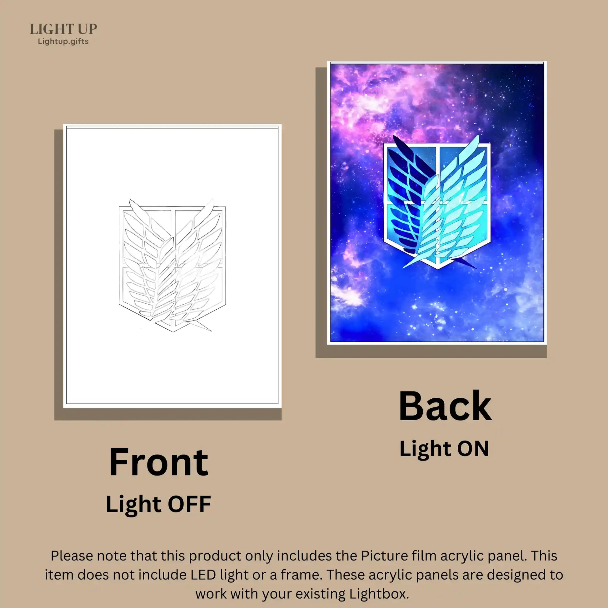 Important Notice: Please note that this product only includes the Picture film acrylic panel. This item does not include LED light or a frame. These acrylic panels are designed to work with your existing Lightbox. Before purchasing, please check your lightboxes size and purchase accordingly.