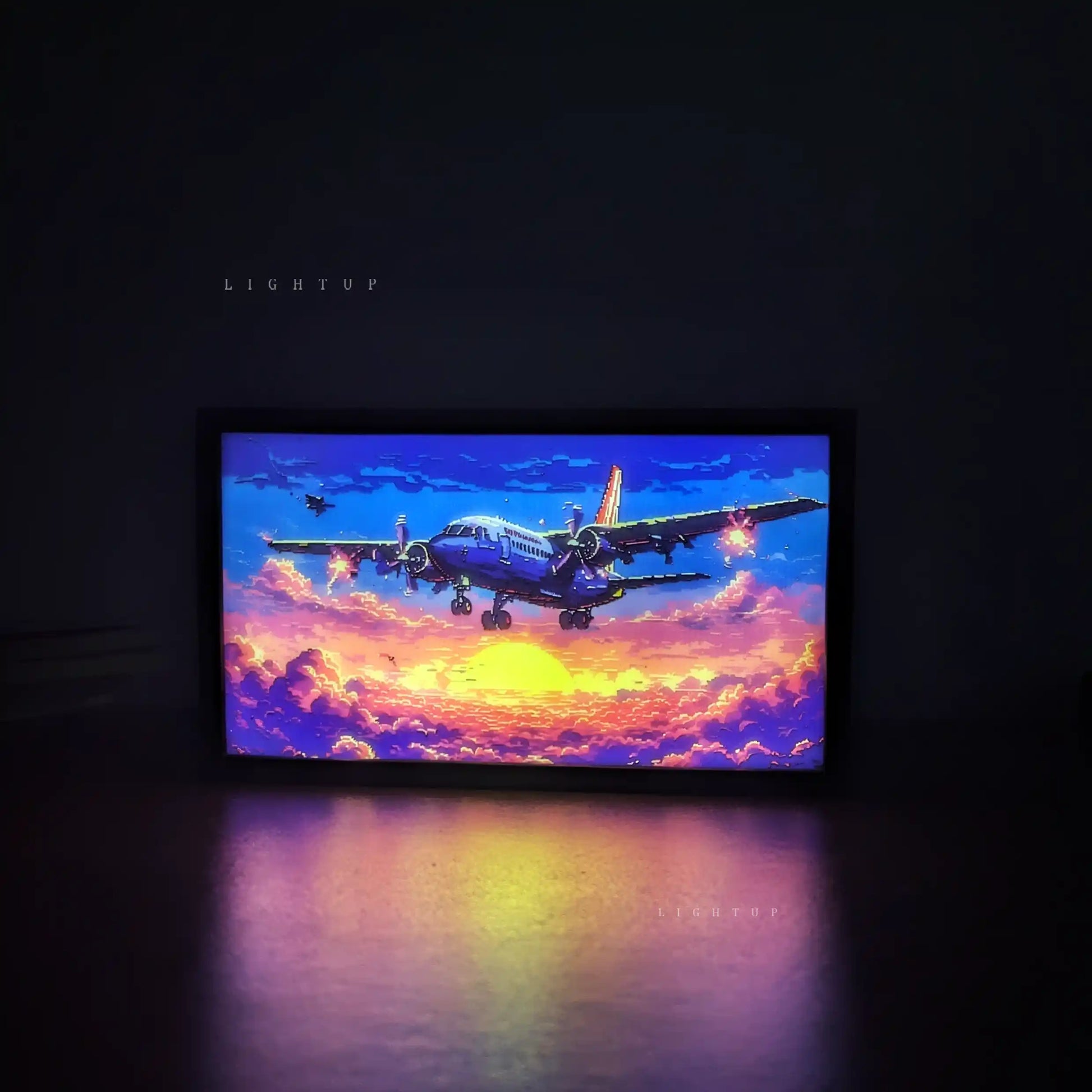 Pixelated Sunset Flight Transformation Lightbox | Scenario